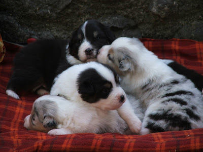 We are pleased to announce that Peanut - now known as "Piper" Ebbtide Call Of The Wild is happily ensconced in her new home in Castro Valley, CA with owners Lynn Ungar and Kelsey Hartman and their daughter, Mattea. "Piper" shares her home with two other dogs (with tails!): a 9-year-old Bernese Mountain Dog, "Coretta" Sunshine's Freedom Rider CDX RE DD W-FDM/MF W-FDX/HTM) and a five-year-old Belgian Tervuren, "Taz", LandmarkMontage Puppetmaster CDX AX OAJ OF RE W-FCh./MF W-FDM/HTM. As you can see, we are thrilled that Piper will be the beneficiary of Lynn's skilled training and handling!